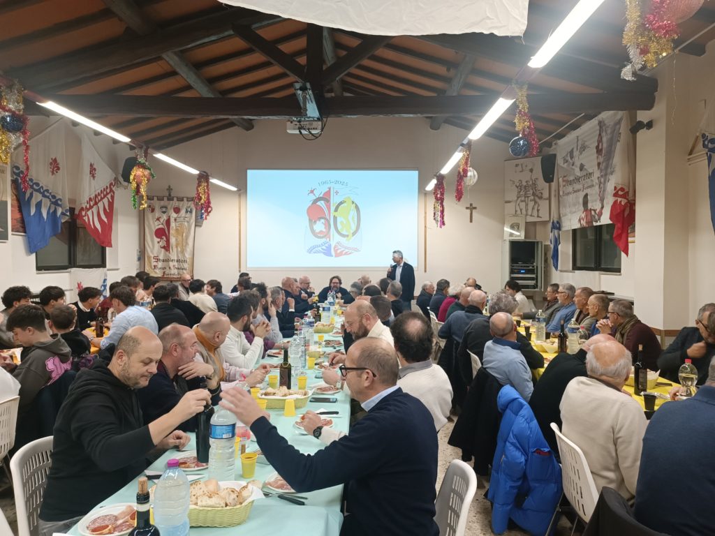 13 dicembre, quasi 100 sbandieratori di oggi e di ieri riuniti per la tradizionale cena di fine anno.